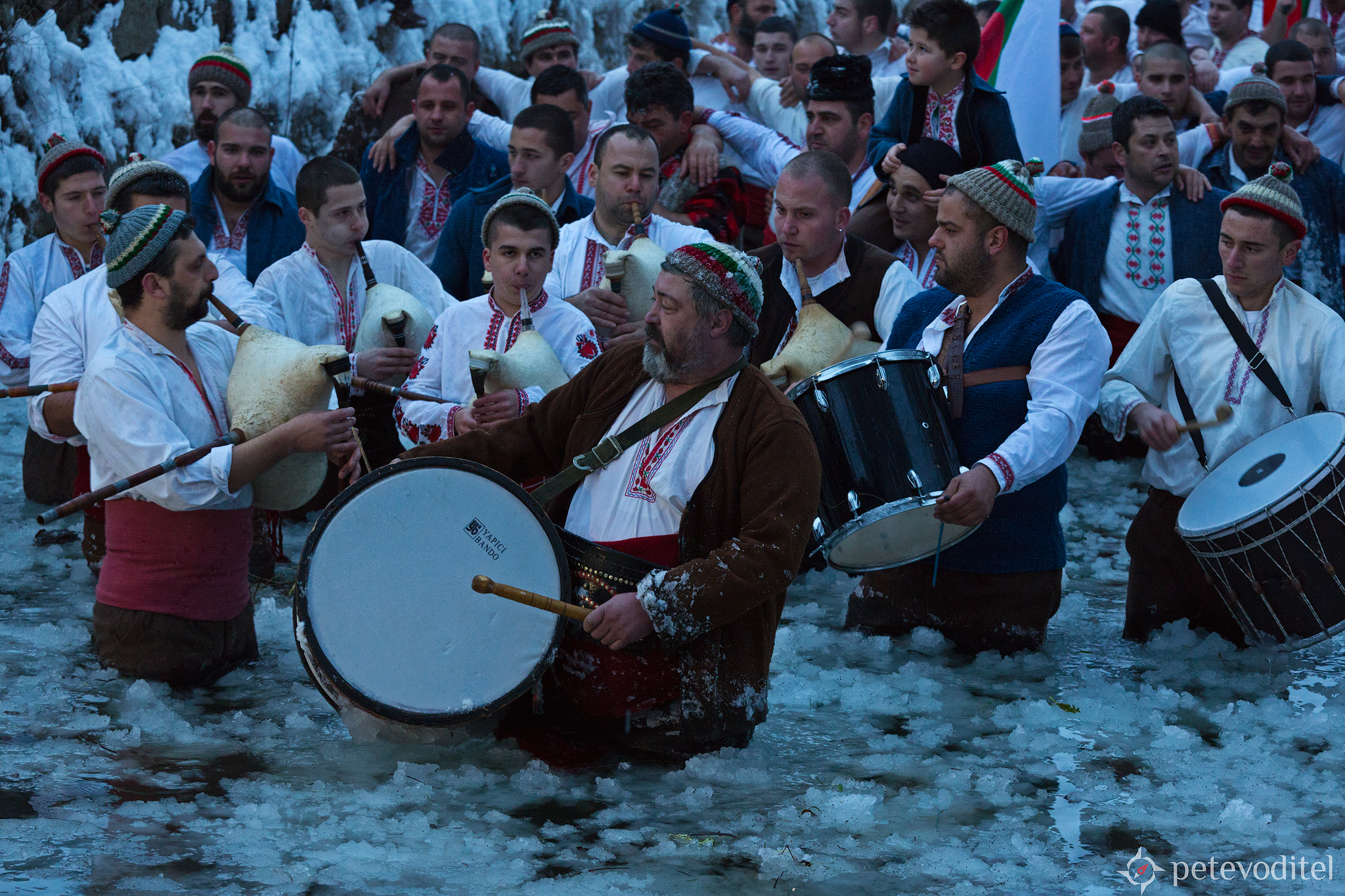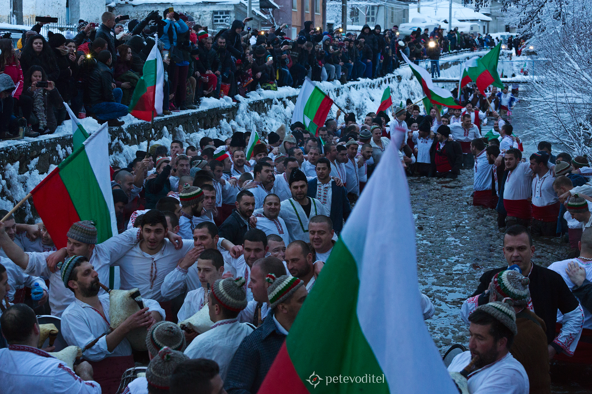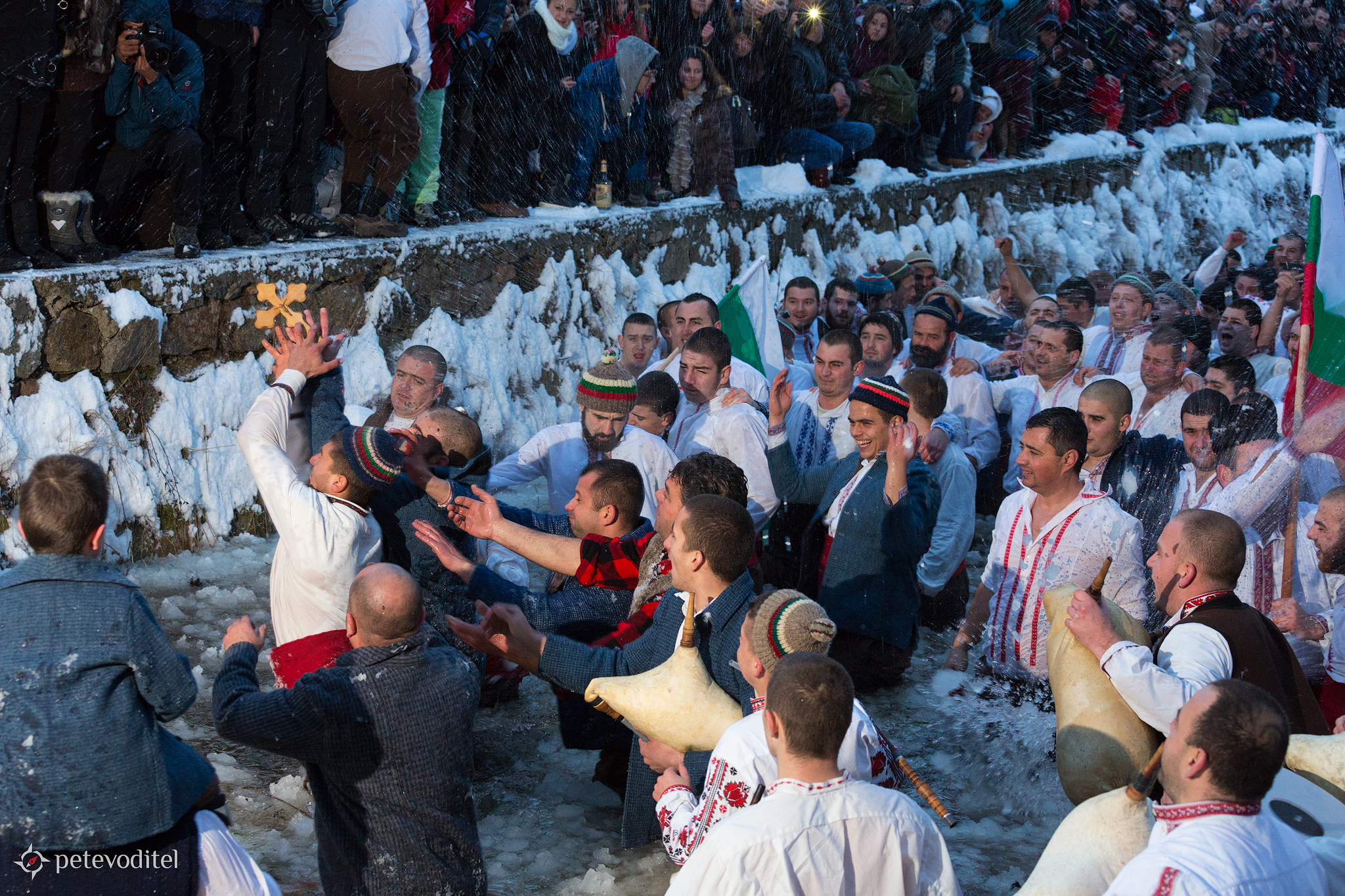 Хващането на кръста в Калофер. Мъжкото хоро в реката започва след улавянето на богоявленския кръст.